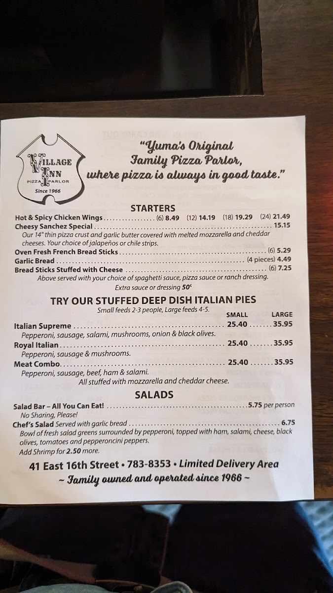In conclusion, Village Inn Pizza Parlor is more than just a pizza place; it's a staple of the Yuma community that captures the essence of comfort food dining. With reasonable prices and an atmosphere that invites laughter and good company, it is a destination not to be missed. So whether you're a local or just passing through, be sure to indulge in the magic of Village Inn—a true culinary landmark where every bite is a reminder of home.
